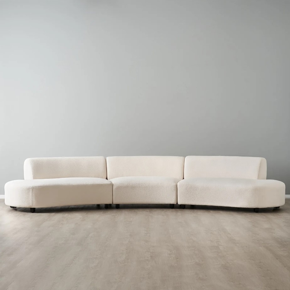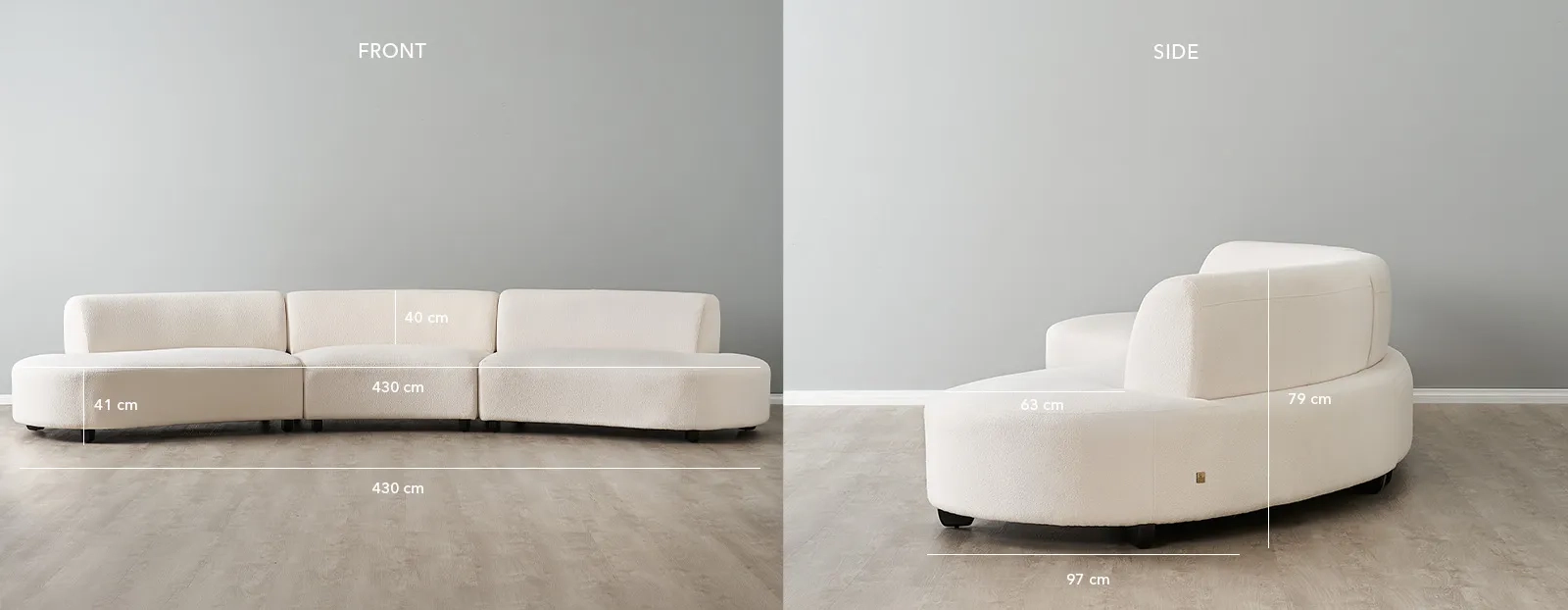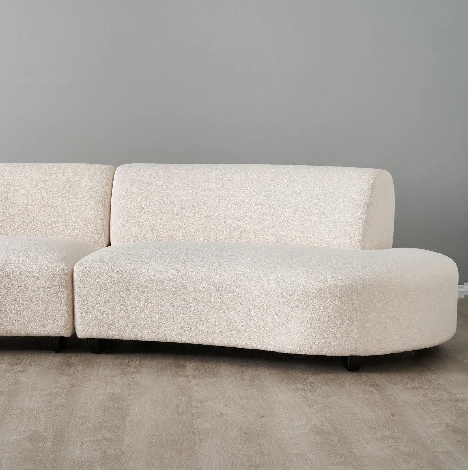 The Celestine II Chantilly White Fabric Curved Corner Sofa infuses any living space with elegance and sophistication, thanks to its impressive, curved design.