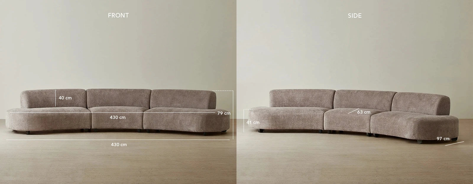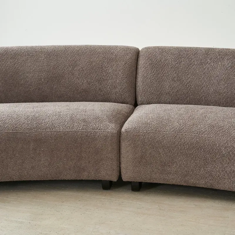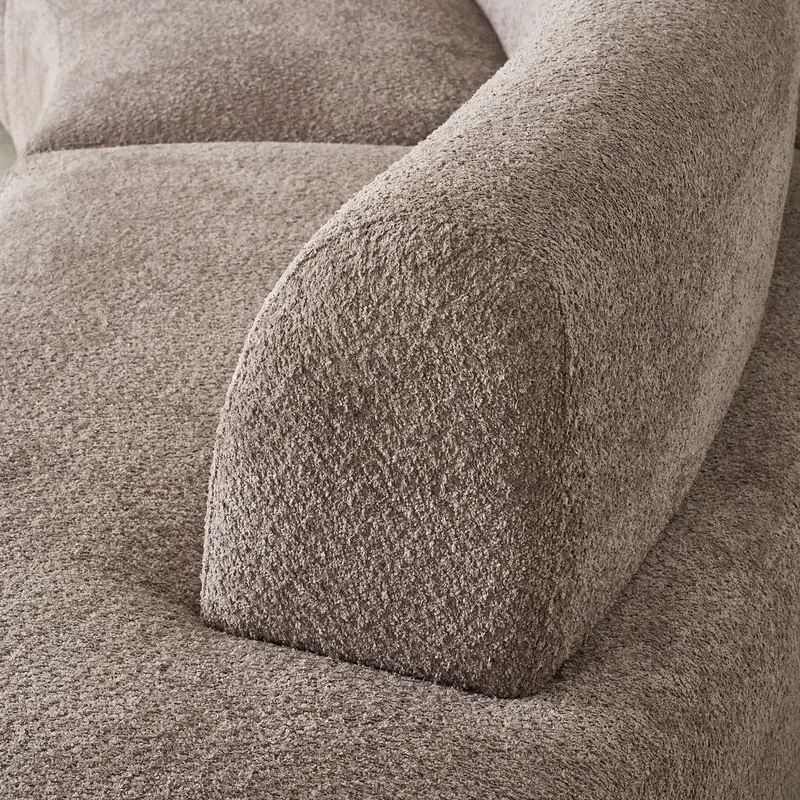 Crafted in warm taupe fabric, the Celestine II Corner Sofa offers a tactile and grounded presence. Its curved form adds flow and softness.
