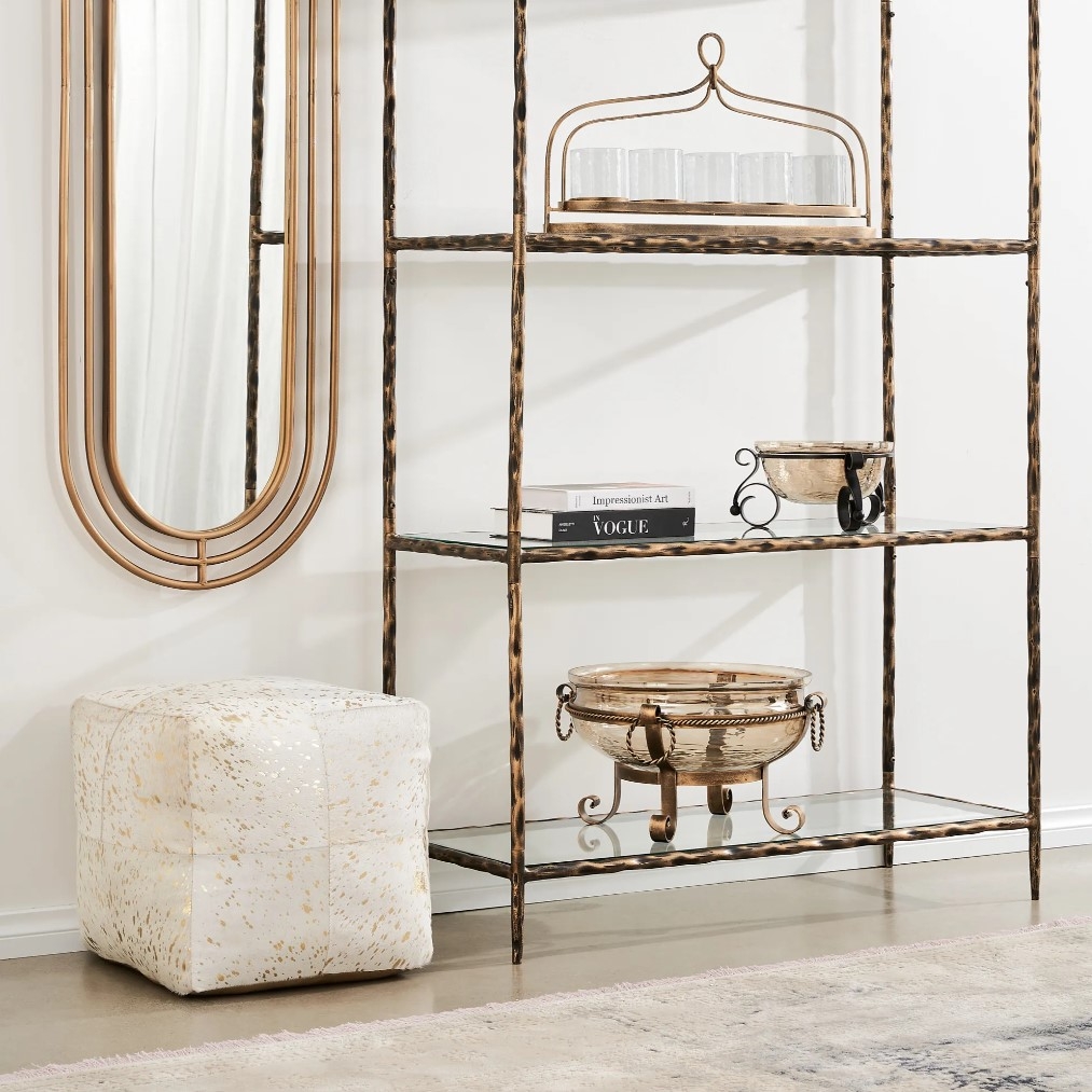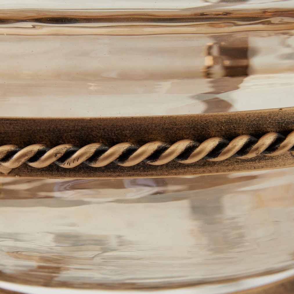 The Chantal Antique Gold Bowl is not just a decorative piece but a breathtaking way to showcase your pastries, meals, and more. Elevate the luxury of your space with this deep, round bowl made of high-quality glass, gracefully supported by a metal stand that radiates in an antique golden lustre.