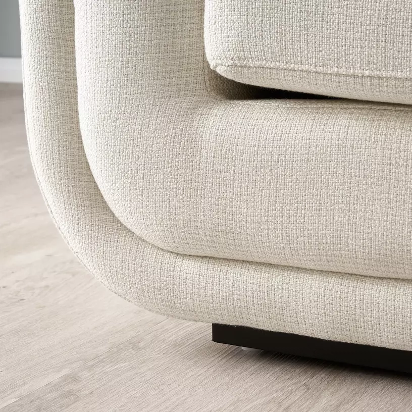 Upholstered in Chestnut White Woven fabric, the three-layered cushioning offers both visual appeal and luxurious comfort, inviting you to sink into its soft embrace from any angle.