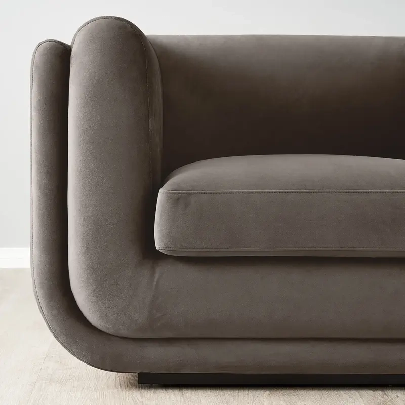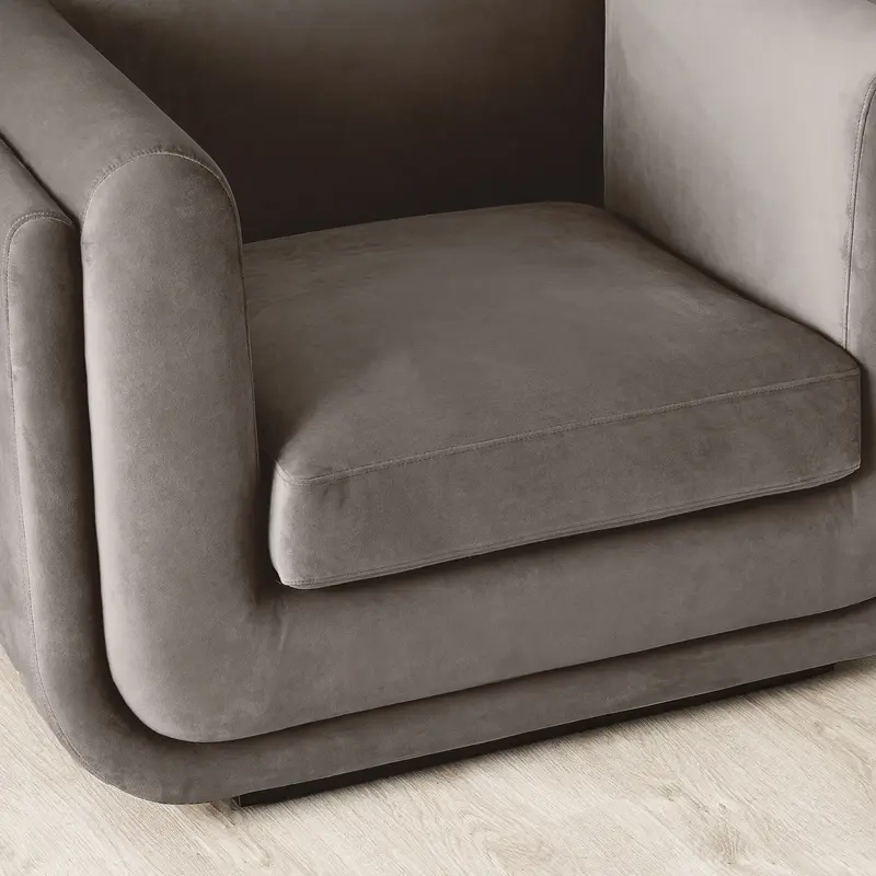 Upholstered in mushroom velvet, the three-layered cushioning delivers both visual appeal and plush comfort, offering a soft and supportive seat from every angle.