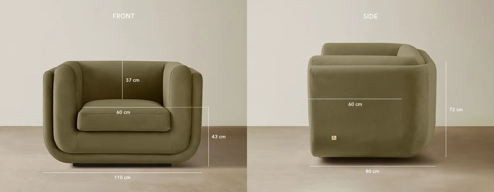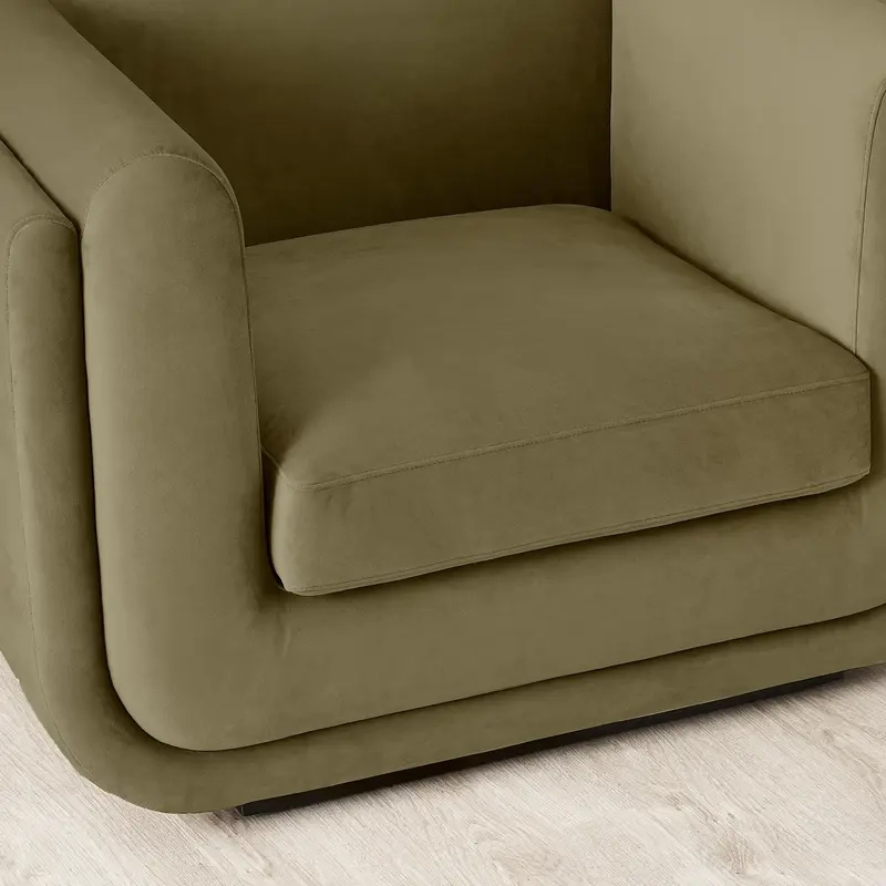Upholstered in olive green velvet, the three-layered cushioning delivers both visual appeal and plush comfort, offering a soft and supportive seat from every angle.