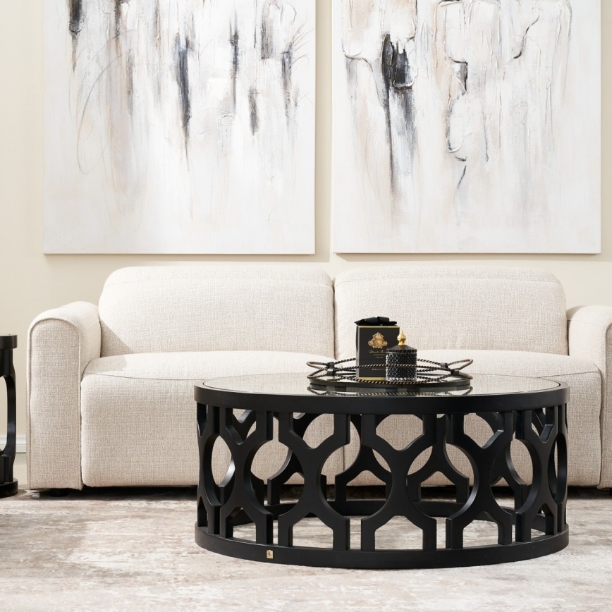 The Coco Black Birchwood Coffee Table offers a sleek circular design, perfect for compact spaces. Its sturdy tempered glass top provides ample space for décor or books, making it ideal for casual gatherings or study sessions.