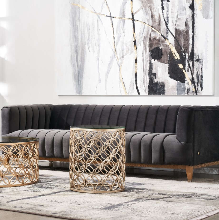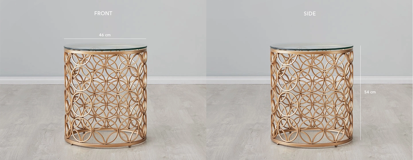 The Cody Side Table's collection of interlocking rings serves as a gorgeously striking base for a circular and sturdy tempered glass tabletop. The openings among the rings create a mesmerizing sight, which also allows the beauty of your floor and rugs to shine through. The Cody can also keep your space clutter free by using its underside as a space for books and magazines. Pair the Cody with an ensemble of Occasional Chairs along with one of our Sofas to create a luxurious room of comfort.