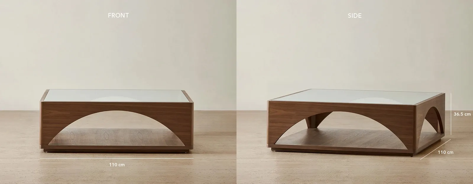 The Costanza Coffee Table blends rich mocha walnut tones with the refined clarity of glass. Its smooth wooden frame highlights the natural grain, adding depth and warmth to contemporary interiors.