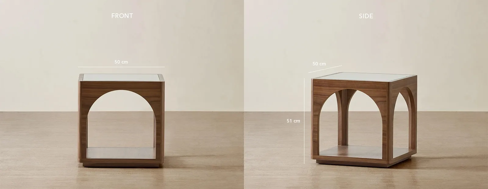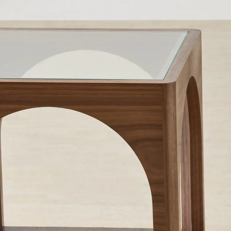 A clear glass top completes the composition, reflecting both structure and space. Subtle yet striking, the Costanza stands as a versatile accent equally beside a sofa, reading chair, or as a statement of form in a minimalist interior.