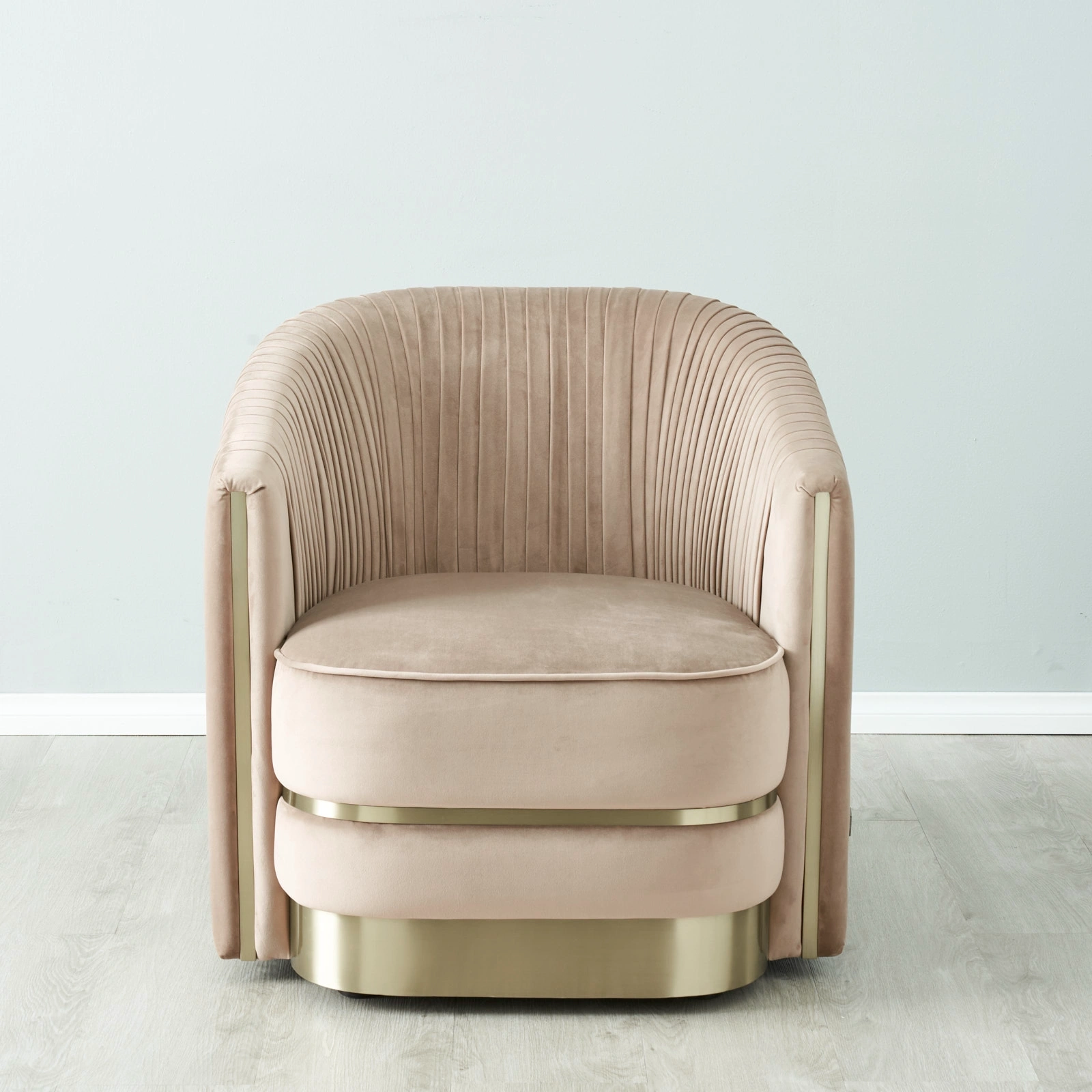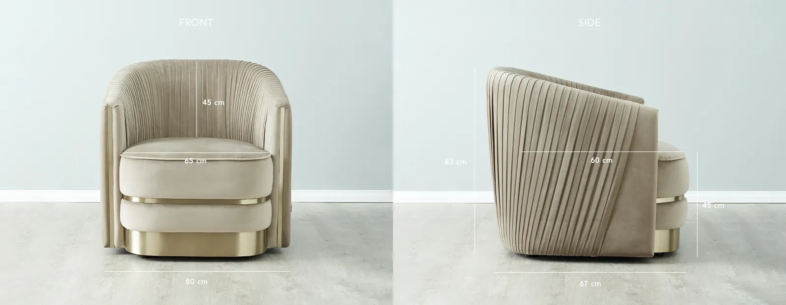 Its semi-concave shape and vertical reeds create a sophisticated, luxurious aesthetic, while the high-density foam seat offers exceptional comfort.