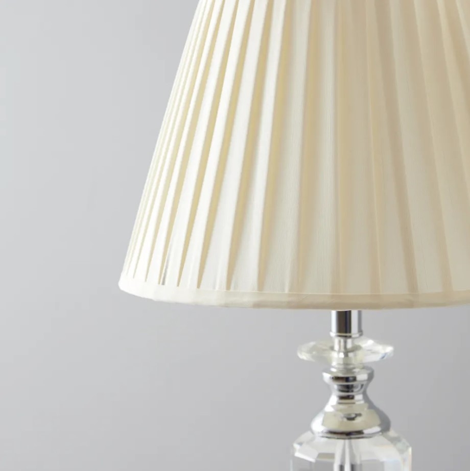 Daisy Shiny Stainless Steel and Crystal Table Lamp - Pleated Cream Fabric Lamp Shade