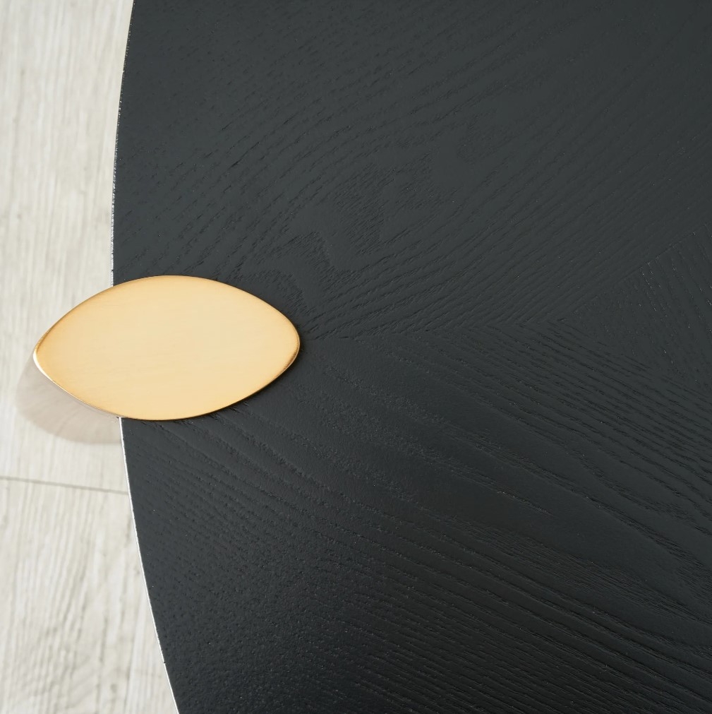 The Dale II Round Coffee Table Espresso features a rich espresso and gold colourway with Art Deco-inspired design and modern craftsmanship. Its compact tabletop is ideal for displaying books or decor, adding elegance to any living space.