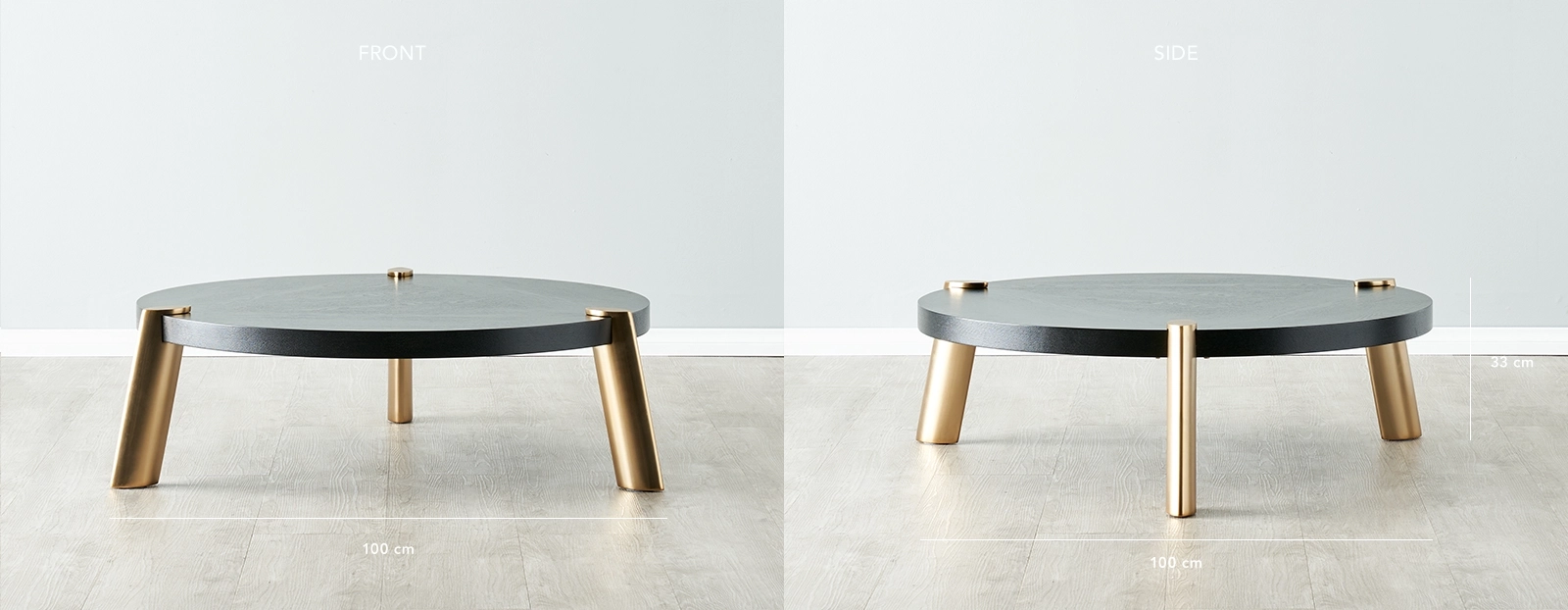 The Dale II Round Coffee Table Espresso features a rich espresso and gold colourway with Art Deco-inspired design and modern craftsmanship. Its compact tabletop is ideal for displaying books or decor, adding elegance to any living space.