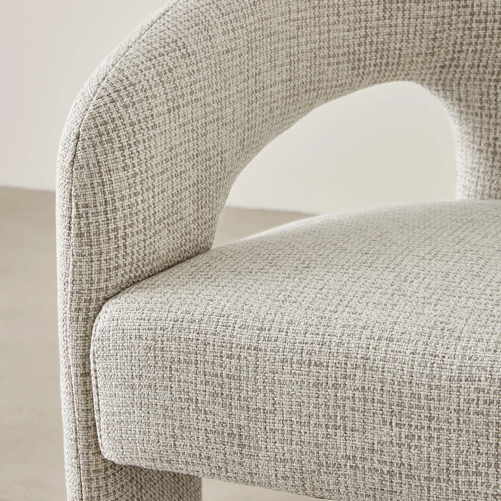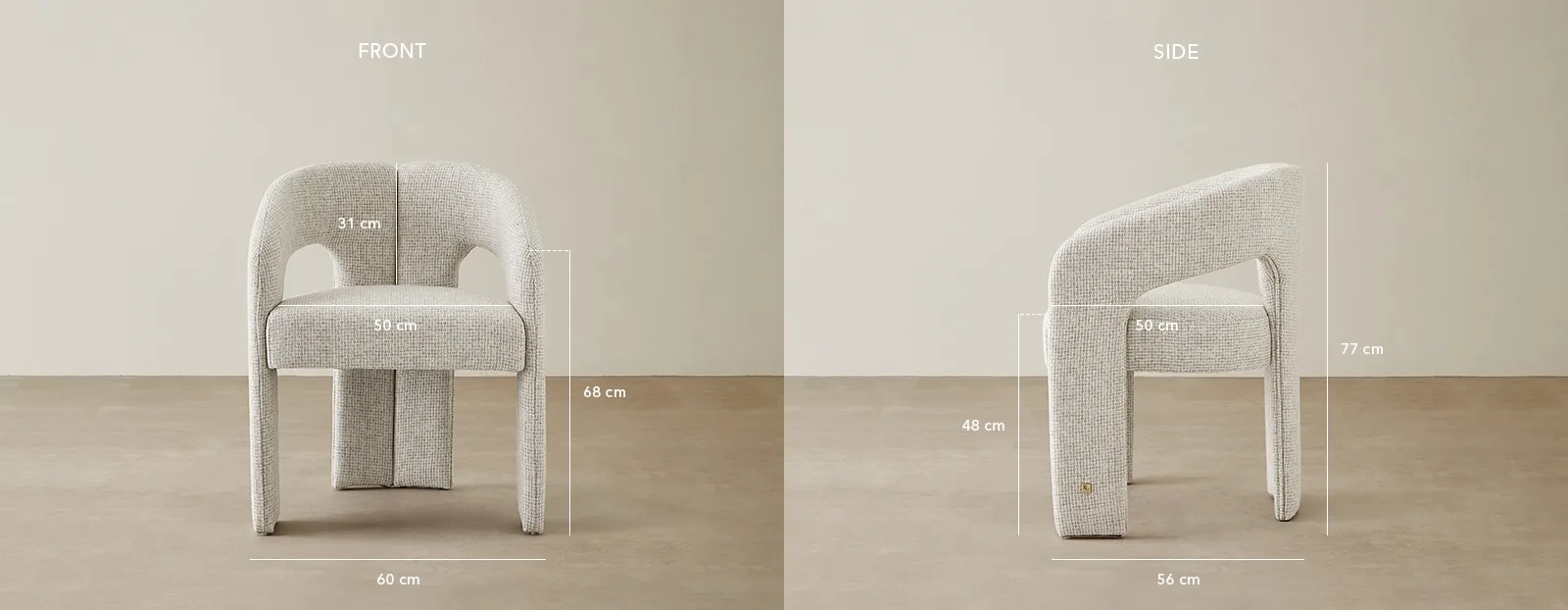 Add modernity to your dining area with the Delaney Dining Chair. This piece is draped in Dove grey woven fabric. featuring a frame with a distinct halved back design. the Delaney is truly an eye catcher.
