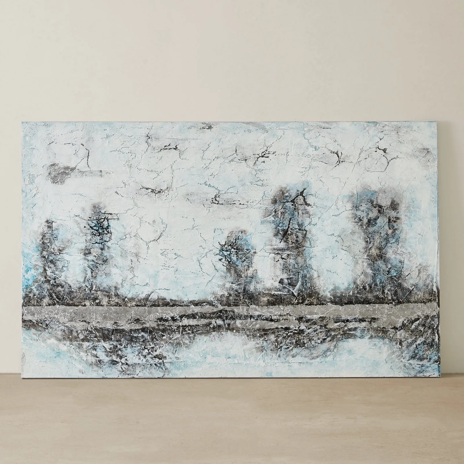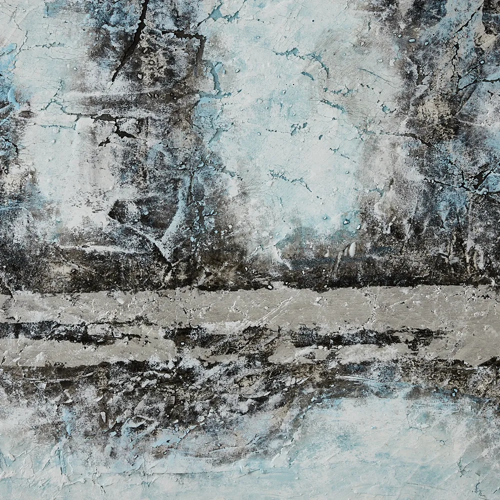 Drawing inspiration from the timeless words of the beloved poem, the Desiderata Painting is a visual ode to the search for life's truths. Hues of blue, white, black, and shimmering silver come together in a tapestry that mirrors the poem's profound reflections on life.