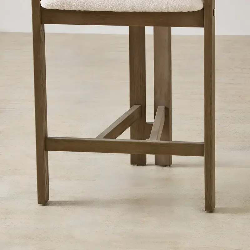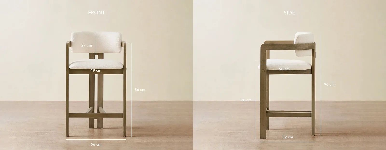 The Desmond is covered in Chantilly White fabric that offers a soft, supportive feel made for daily use. The stool’s curved back and cushioned seat create a comfortable shape that supports relaxed sitting.