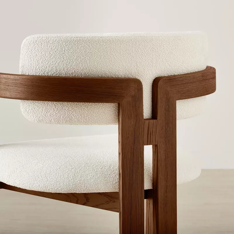 The Desmond Dining Chair showcases a refined design that blends elegance with everyday comfort. Its rustic frame features sleek, sculptural lines that add a sophisticated touch to any space.