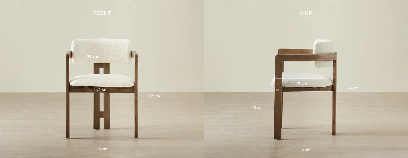 The soft white fabric on the seat and back ensures a comfortable dining experience. Balancing style and function, this chair is a perfect fit for more modern interiors.
