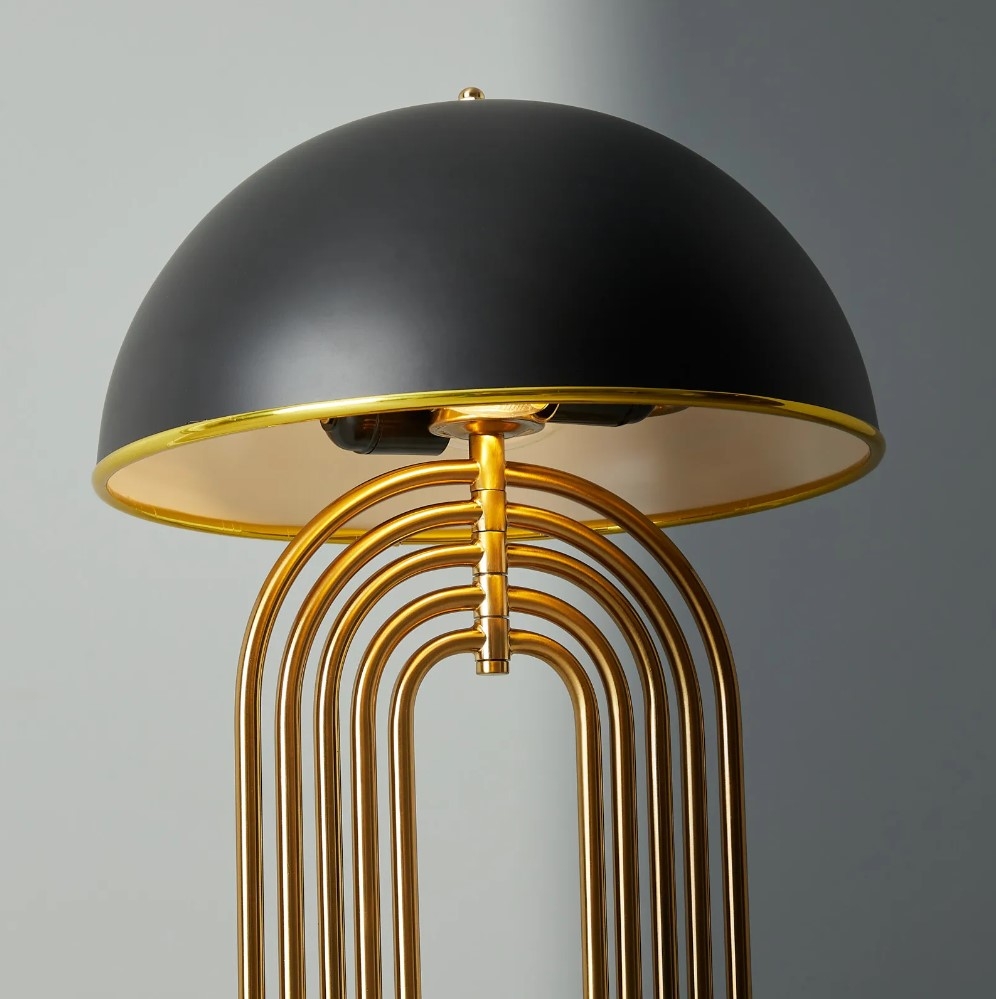The Diana Brushed Gold Metal Table Lamp stands as a testament to the fusion of functionality and artistry. Emanating grace and grandeur, this floor lamp isn't just an illuminator but a statement piece that transforms spaces with its brilliance. At the heart of Diana are two pendant bulbs, each radiating a soft, ambient glow. These bulbs are ingeniously cradled within a luxe black metal shade, accented with elegant golden borders.
