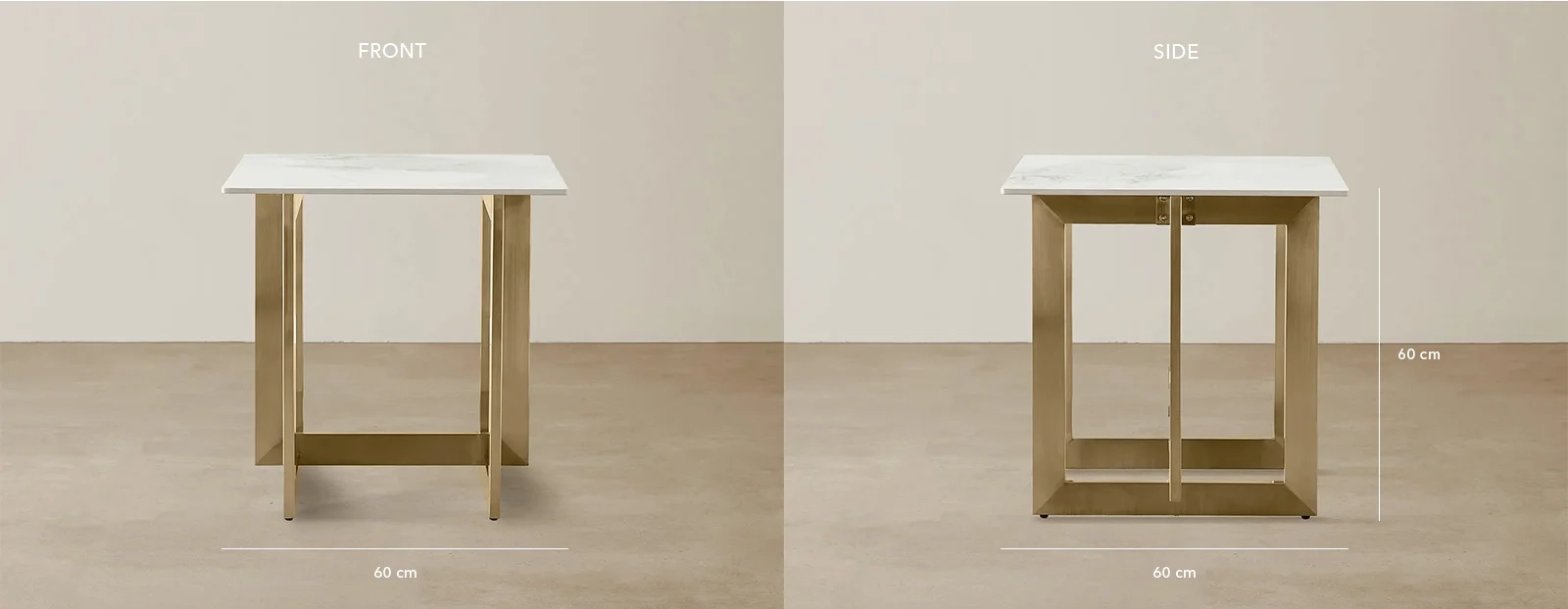 The Dianne Side Table embodies luxury with its luxurious sintered stone top. The unique grey veining on each table offers the natural beauty of marble with superior performance and timeless elegance.