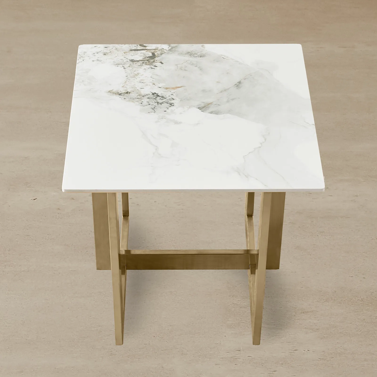 Dianne White Grey-Streaked Sintered Stone Side Table - Brushed Champagne Gold Stainless Steel Frame