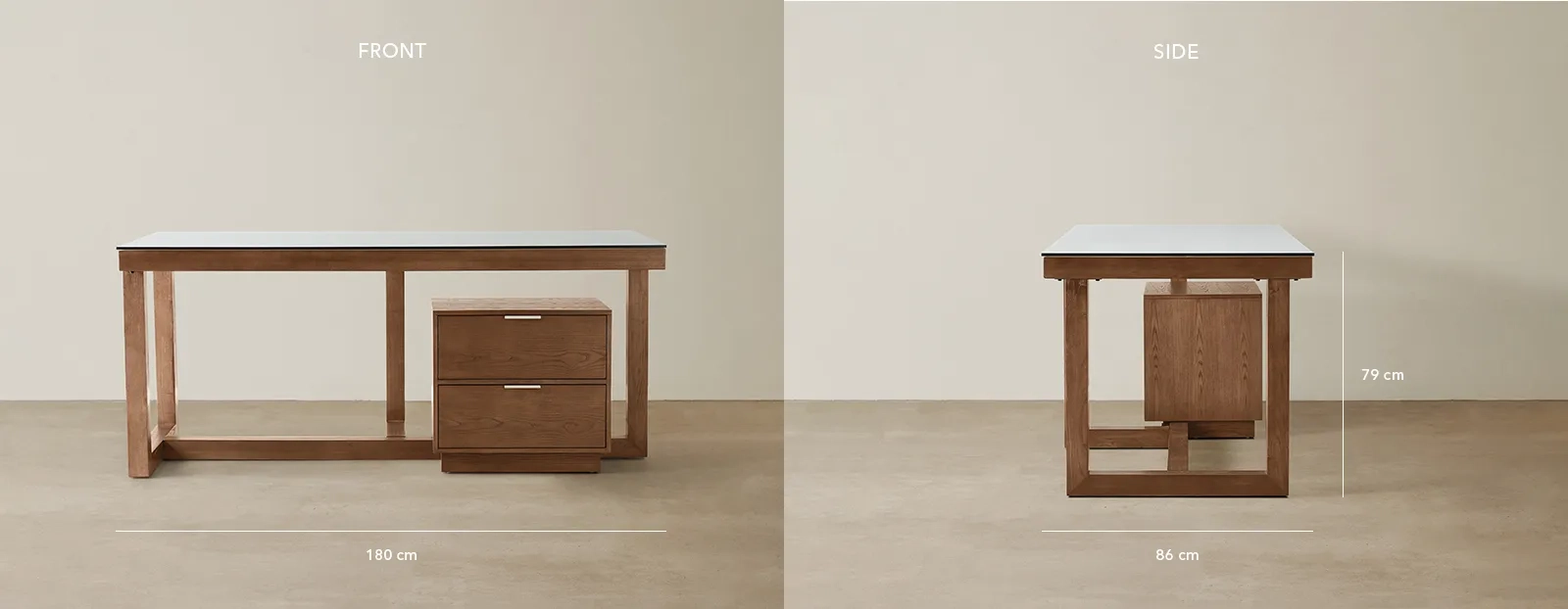 The open design creates a spacious workspace. On one side, there are two pull-out drawers for storage. It Instantly adds elegance and functionality to any home office.