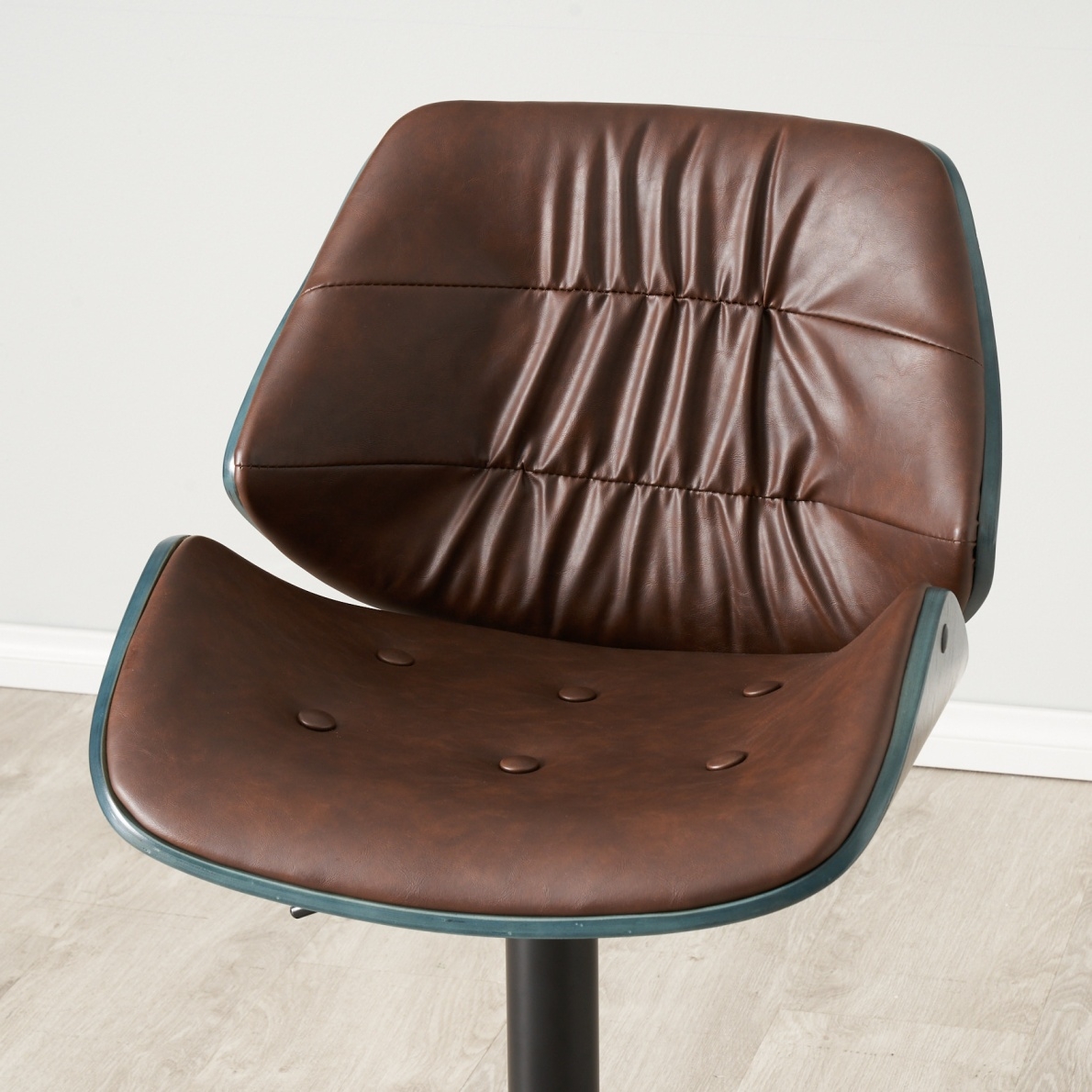 Wine and Dine in absolute delight with our Draco Dark Brown Vegan Leather Bar Stool. Crafted with meticulous attention to detail, the Draco is upholstered in high-quality vegan leather, showcasing a warm dark brown shade. Its backrest features visible horizontal stitching, dividing it into distinct segments and giving it a stand-out look. The Draco's angled backrest and seat not only create a visually stunning effect but also pay homage to the timeless tub-chair design. This exquisite detailing enhances its overall elegance, making it a captivating addition to any dining space.