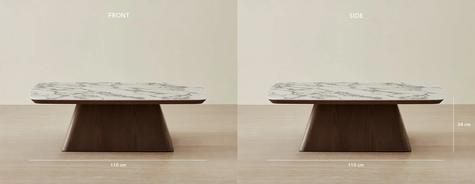 Dunstan Calacatta Viola Sintered Stone Coffee Table - Amber Brown Wooden Legs