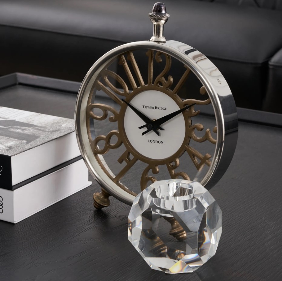 At the heart of the Edmund Gold Table Clock is its captivating clock face, where the inner hands are surrounded by bold numbers displayed in a whimsical-style font. This playful and artistic approach to the numerals adds a sense of fun and creativity to the clock, making it a conversation starter and a source of joy in any setting.