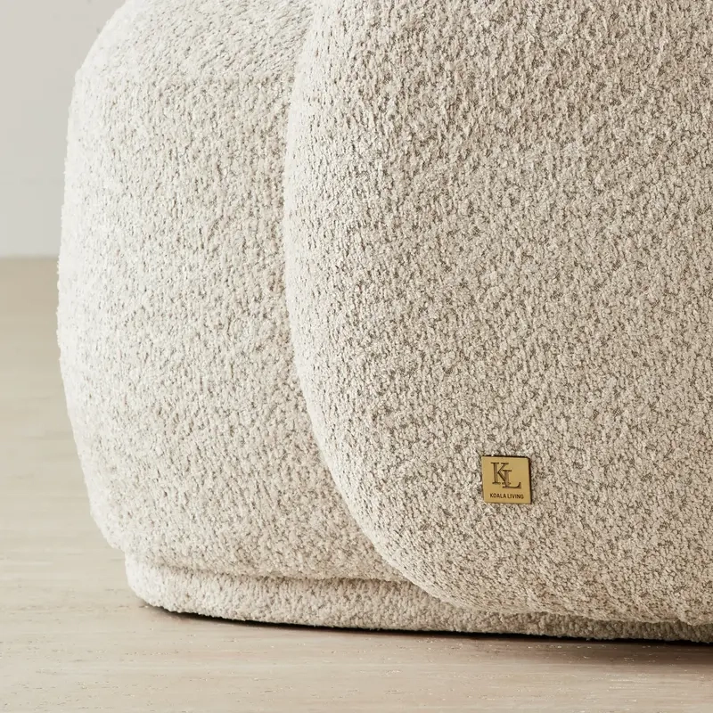 The Elianna Stone Cream 3-Seater Woven Fabric Sofa features a gracefully curved silhouette, bringing an air of understated elegance to your living space. Upholstered in a soft, stone cream woven fabric, it offers both comfort and timeless appeal.