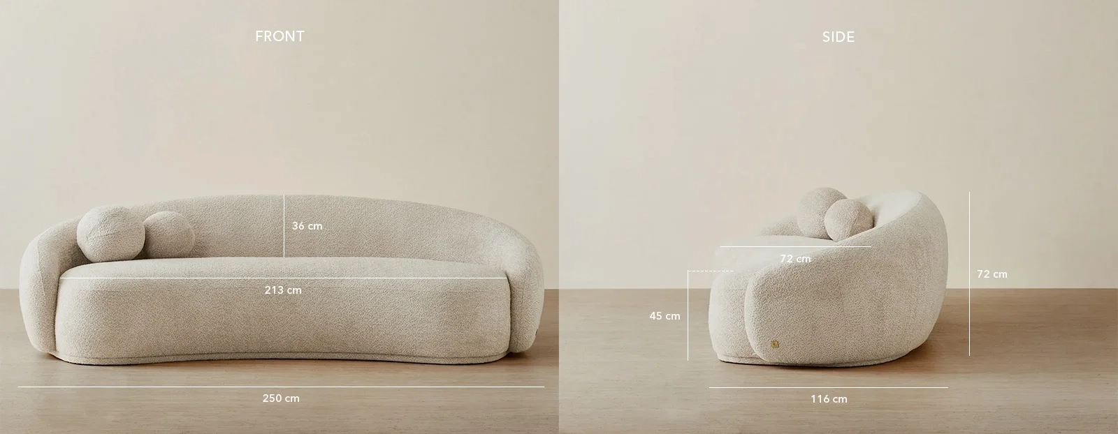 Paired with two rounded cushions, this sofa perfectly balances comfort and design, enhancing its refined aesthetic. A statement of classic sophistication, the Elianna adds warmth and charm to any room.