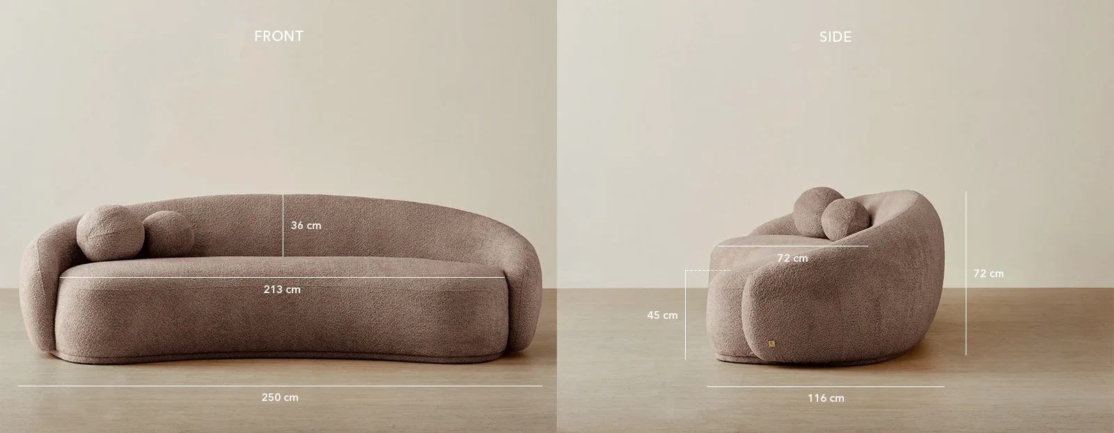 Paired with two rounded cushions, this sofa seamlessly blends comfort and design, enhancing its understated elegance. A statement of refined style, the Elianna brings warmth and a contemporary feel to any room.