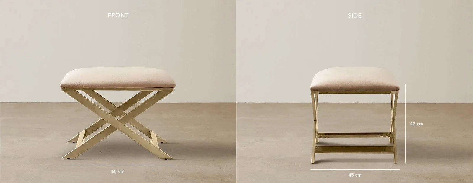 The X-shaped base adds stability and visual interest to its timeless silhouette. Versatile in use, it works as seating, a footrest, or an accent table when paired with a tray.