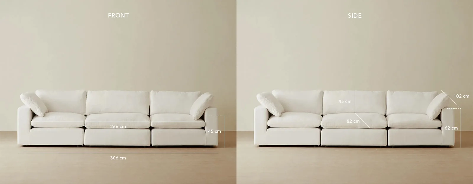 Upholstered in a soft, textured fabric, it offers a crisp, contemporary look that suits any modern interior. Fully modular, it adapts effortlessly to your space and lifestyle—whether for lounging, gathering, or quiet reflection.