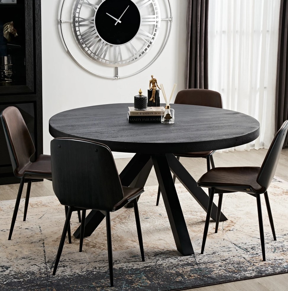 Enjoy meals and meaningful conversations in a cozy fashion with the Emmet Black Mango Wood Dining Table. It features a minimalist design and a rustic aesthetic that will surely resonate throughout your household. The Emmet's masterfully crafted round tabletop is made from ethically sourced mango wood in a contemporary black-coloured shade. Mango wood is prized for its durability, ensuring that the Emmet will be a staple in your dining area for years to come.