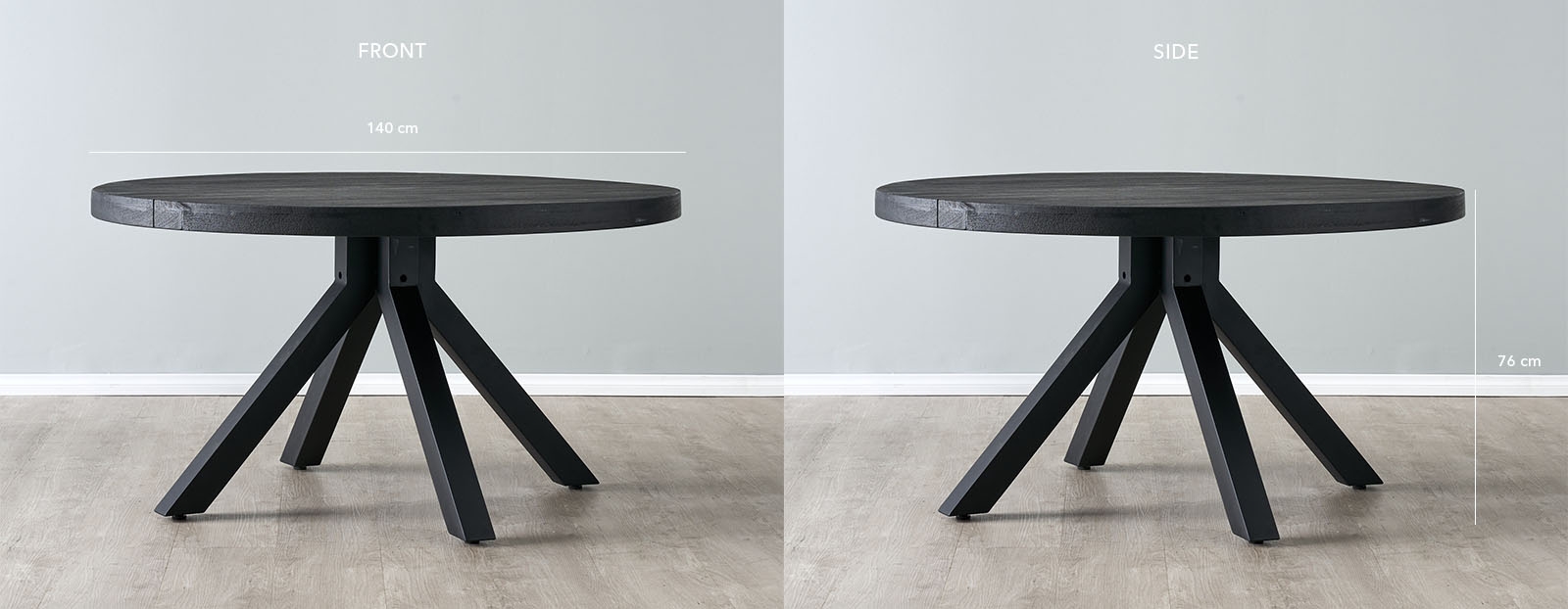 The Emmet's round table design makes conversations and meals a little more intimate when compared to the standard rectangular tables. The round design is also perfect for smaller spaces. Four sturdy and stable steel legs are angled beautifully to provide support while adding a contemporary touch to the Emmet's rustic appeal. The Emmet Dining Table can comfortably accommodate up to 6 of your closest friends and family.