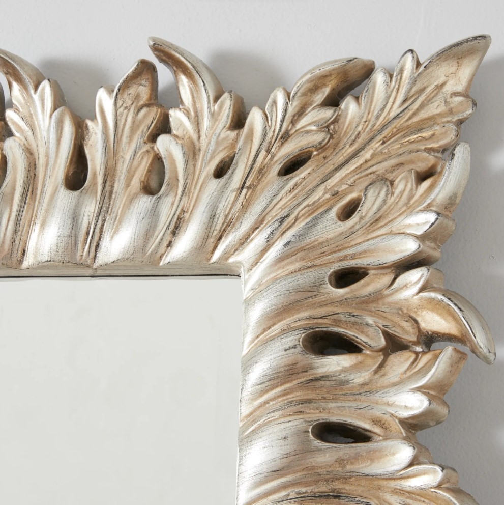 The magic of mirrors lies not just in their reflection but in the stories they tell through their frames. Enter the Empire, a breathtaking antique mirror that is more than a mere reflective surface; it's a testament to artistry, heritage, and meticulous craftsmanship. The Empire's frame, painted in a resplendent antique silver, is its crowning glory. Drawing inspiration from eastern leaf wooden carvings, the design intricately weaves tales of far-off lands, ancient traditions, and the delicate touch of artisans of yore.