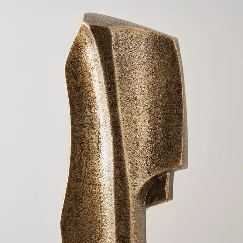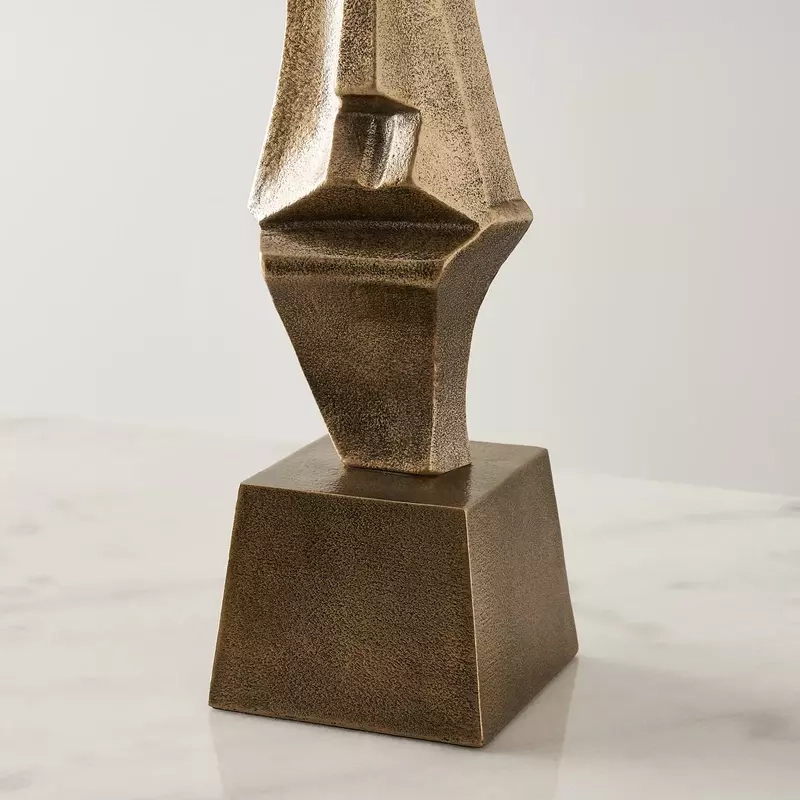 Its unique shape and warm, antique brass tones bring an artful edge to any setting.