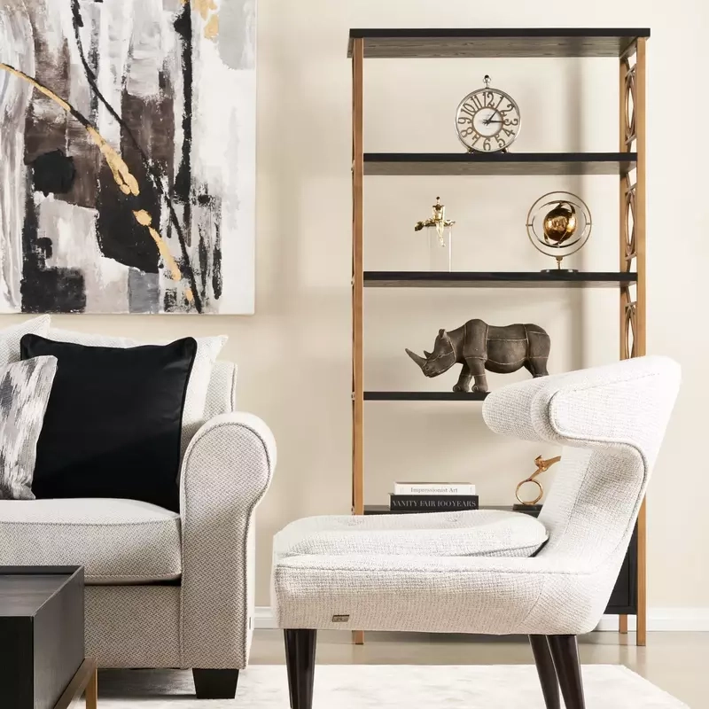 The Eugenie Bookshelf offers notes from the art deco style and combines them with modern sensibilities. Its Five different shelves are just waiting to be filled with your imagination. Its gorgeous frame is a love letter to art-deco designs of old. The Eugenie's frame features a stunning geometric pattern in a beautiful shade of gold. Its open design plays with light and space to add intrigue to your home.