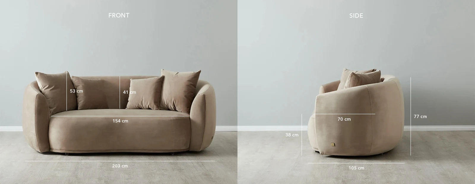 The Everett Beige Velvet 2-Seater Sofa perfectly blends luxury and comfort for your living room. Draped in Beige coloured velvet fabric, its cushioned seat is a beacon of cozy elegance.