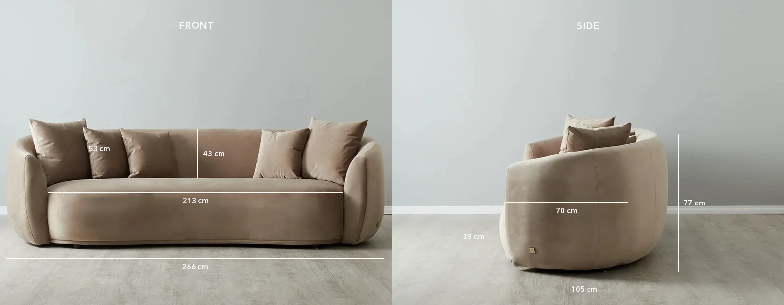 The Everett Beige Velvet 3-Seater Sofa perfectly blends luxury and comfort for your living room. Draped in Beige coloured velvet fabric, its cushioned seat is a beacon of cozy elegance.