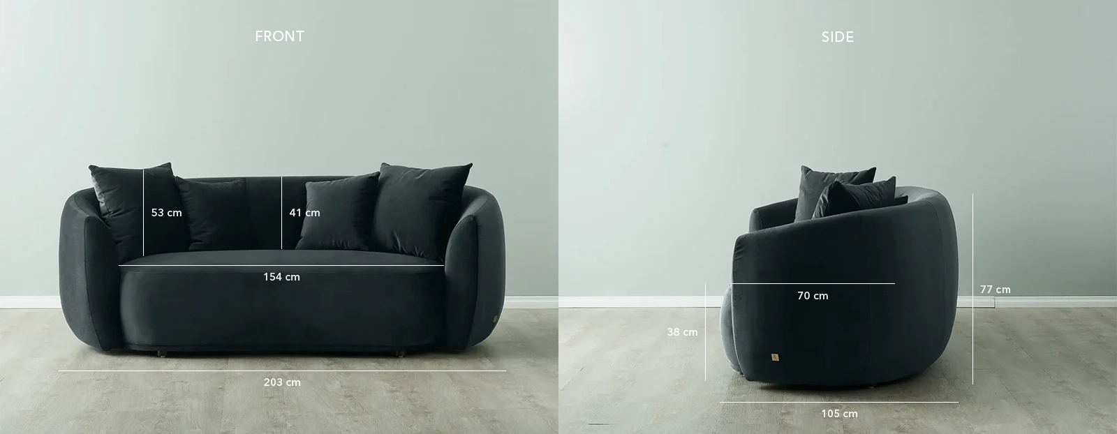 The Everett Charcoal Velvet 2-Seater Sofa perfectly blends luxury and comfort for your living room. Draped in Charcoal coloured velvet fabric, the Everett is a beacon of cozy elegance.