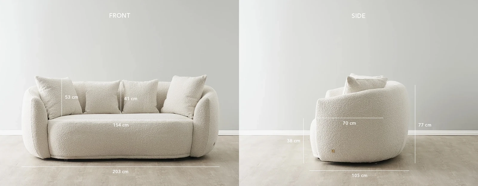 The Everett Cream Boucle 2-Seater Sofa perfectly blends luxury and comfort for your living room. Draped in cream-coloured boucle fabric, the Everett is a beacon of cozy elegance.