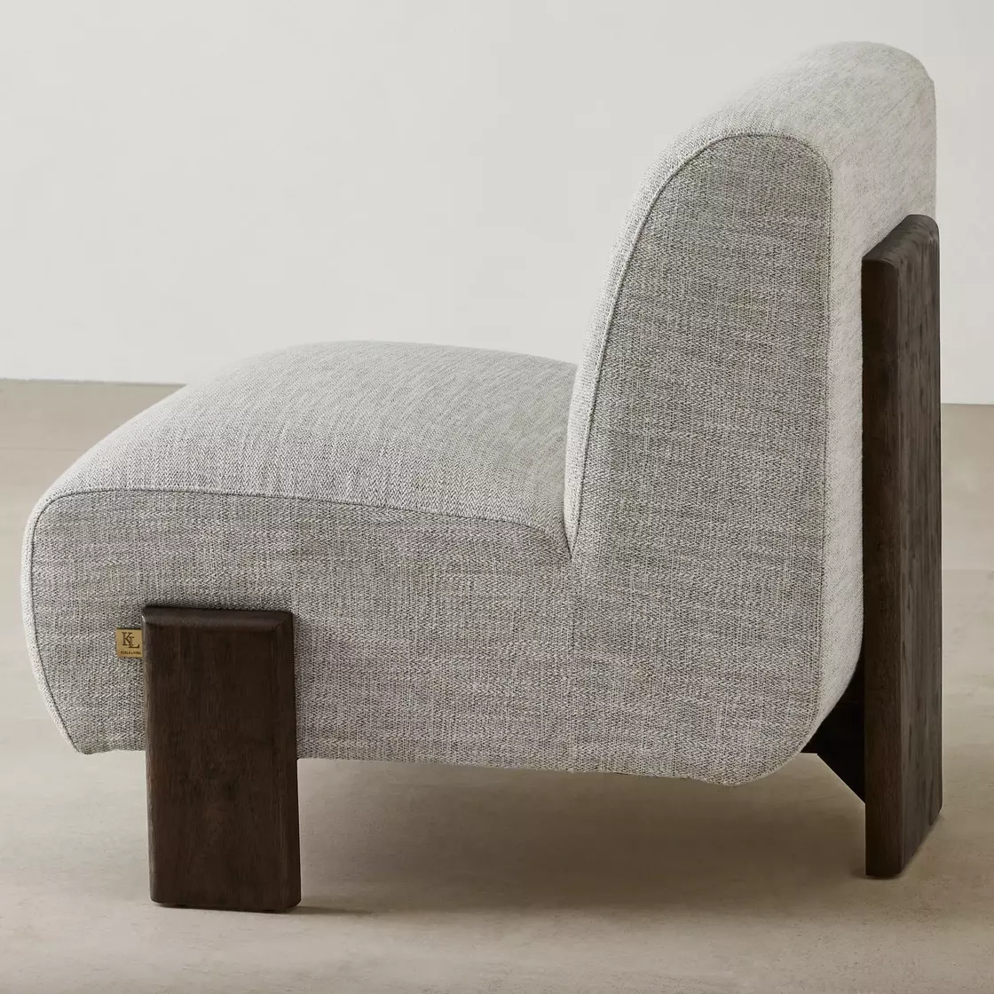 The Freya Murmur White Fabric Occasional Chair combines natural wood with soft fabric for a serene and inviting presence.