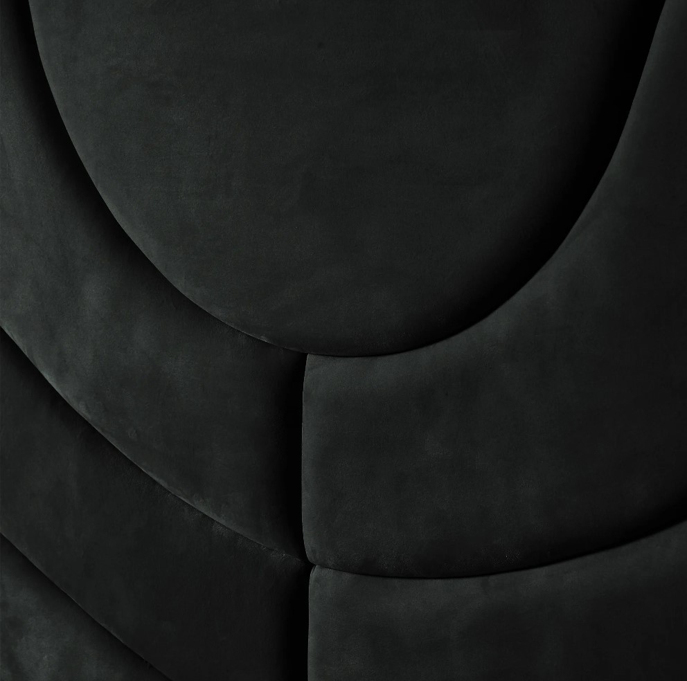 The Gertrude possesses' qualities that will elevate your bedroom's style to heavenly heights. This majestic piece is made from high-quality materials and features a luxurious charcoal and black nickel colour scheme that fits modern or minimalistic themes. The Charcoal Velvet headboard is artistically designed with elegant curves and lines reminiscent of beautiful sand art. Supporting each side of the bed are two black nickel frames that add to its luxurious aesthetic. This combination of stylish design and gorgeous colours makes the Gertrude an undeniable focal point for your bedroom.