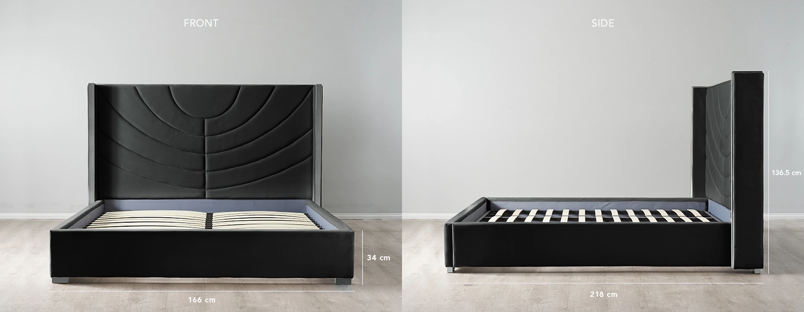 The bed also features sprung slats, known to increase the lifespan of any mattress and provide a more cushioned and comfortable sleeping experience. The Gertrude checks all the boxes in comfort, durability and style, which is why it continues to be one of the best in our collection. Pair the Gertrude with one of our majestic floor rugs along with a bedroom side table for a truly stunning display.