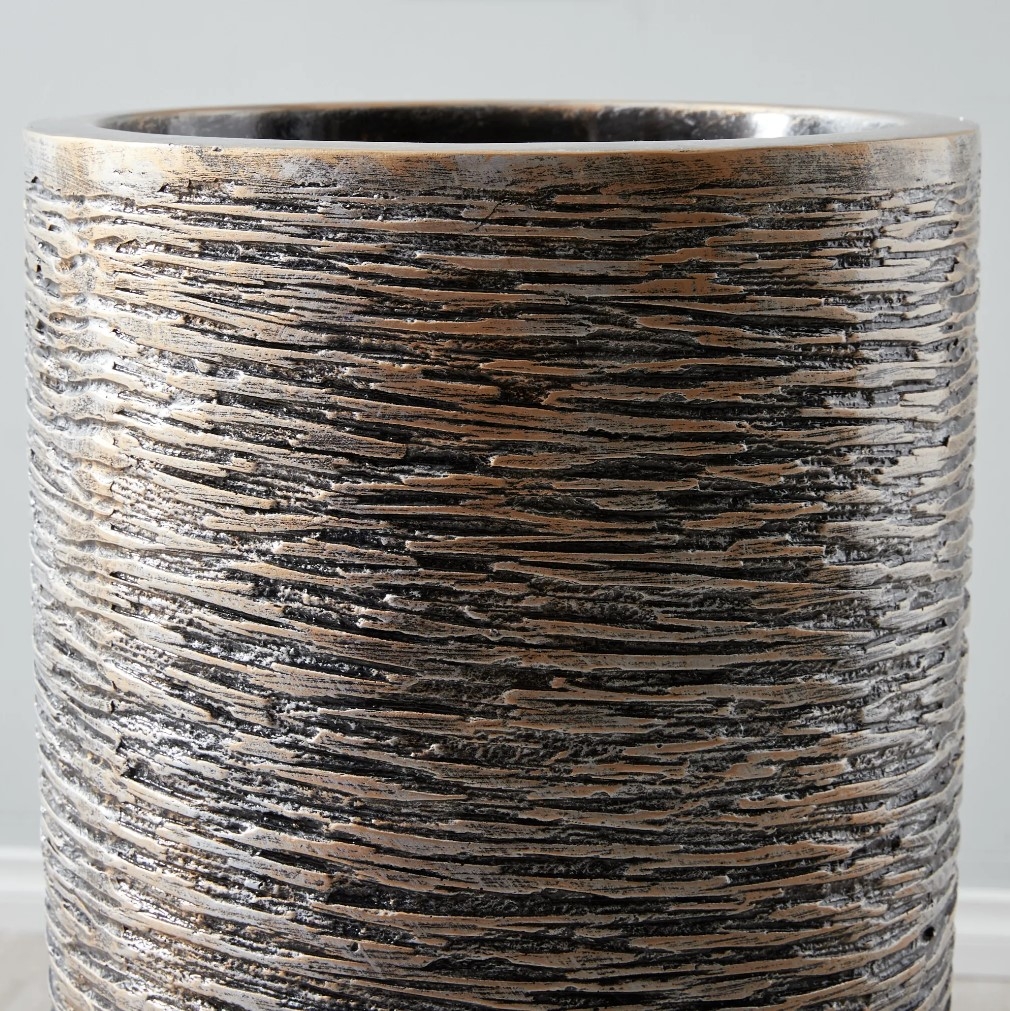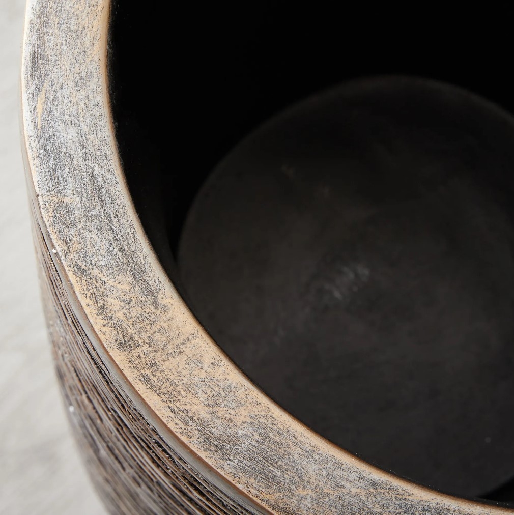 The vase shines with a bronze-coloured lustre that exudes a sense of warmth and richness. But what truly sets the Gideon Antique Gold Vase apart is its striking weathered pattern. Imperfect yet beautiful lines crisscross the surface of the vase, simulating the passage of time and giving the piece a sense of history and character.