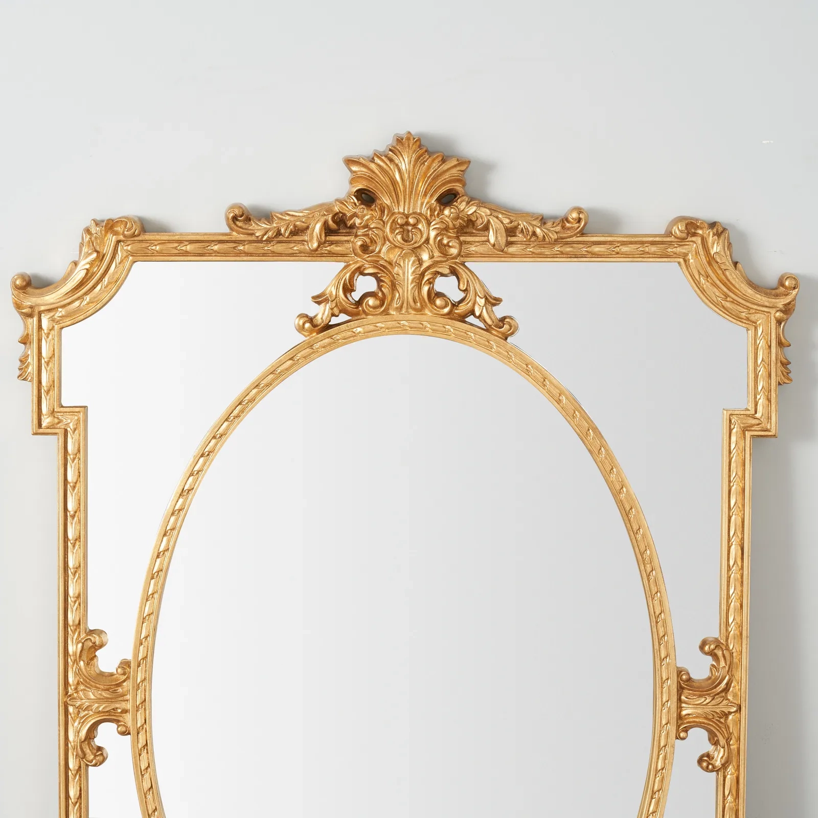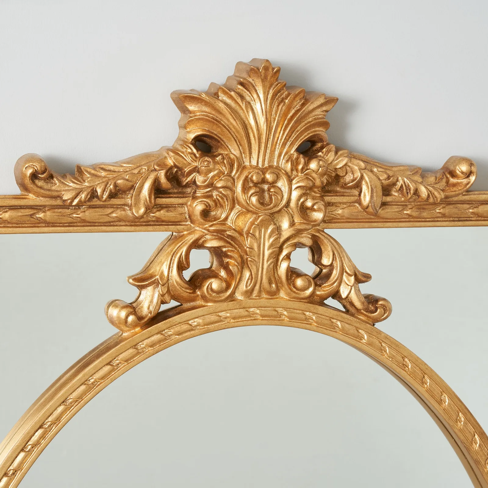 The Gillian Antique Gold Mirror features a classic, ornate design with a rich gold finish that captures the essence of traditional elegance.