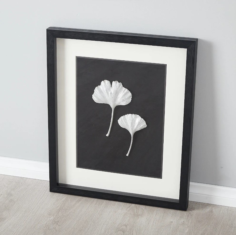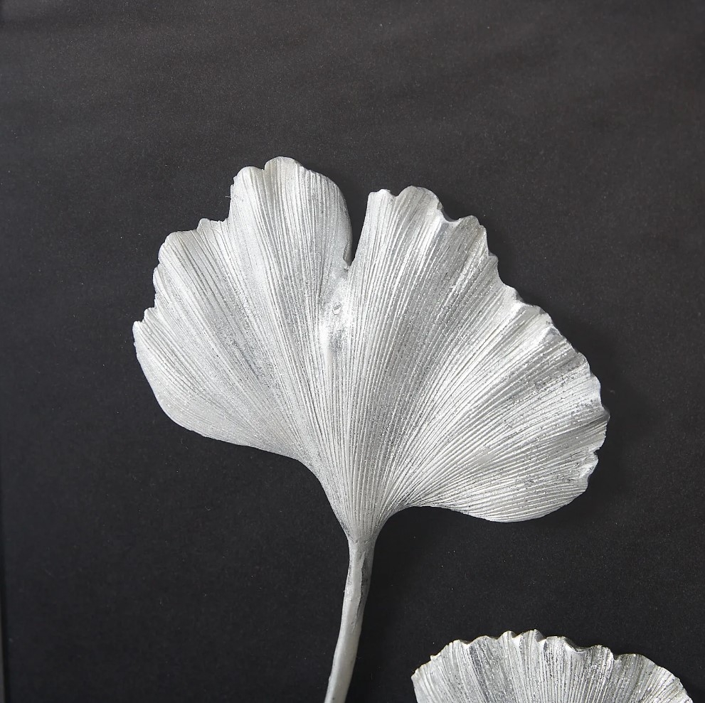 The Ginkgo Silver Leaf Shadowbox is an embodiment of elegance and simplicity combined. Drawing inspiration from the timeless beauty of the ginkgo, this shadow box showcases two gracefully poised silver ginkgo leaves. The meticulous transition of silvery hues, from subtle to pronounced, is a visual journey that beckons admiration.