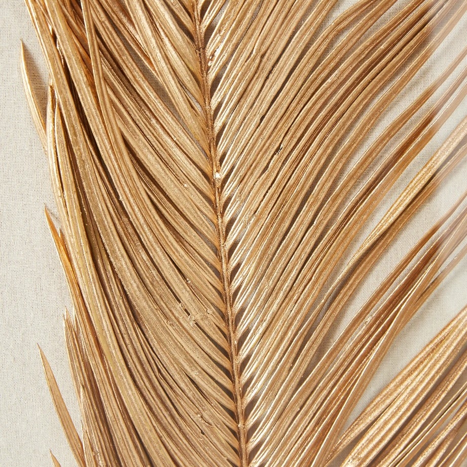 The Golden Leaf Shadowbox features a stunning gold leaf encased in a beautiful champagne coloured frame. The piece is inspired by the beautiful Sago Palm leaf and features intricate details emphasizing beauty in every inch. Its lustrous gold colour adds a luxurious aesthetic to any space.