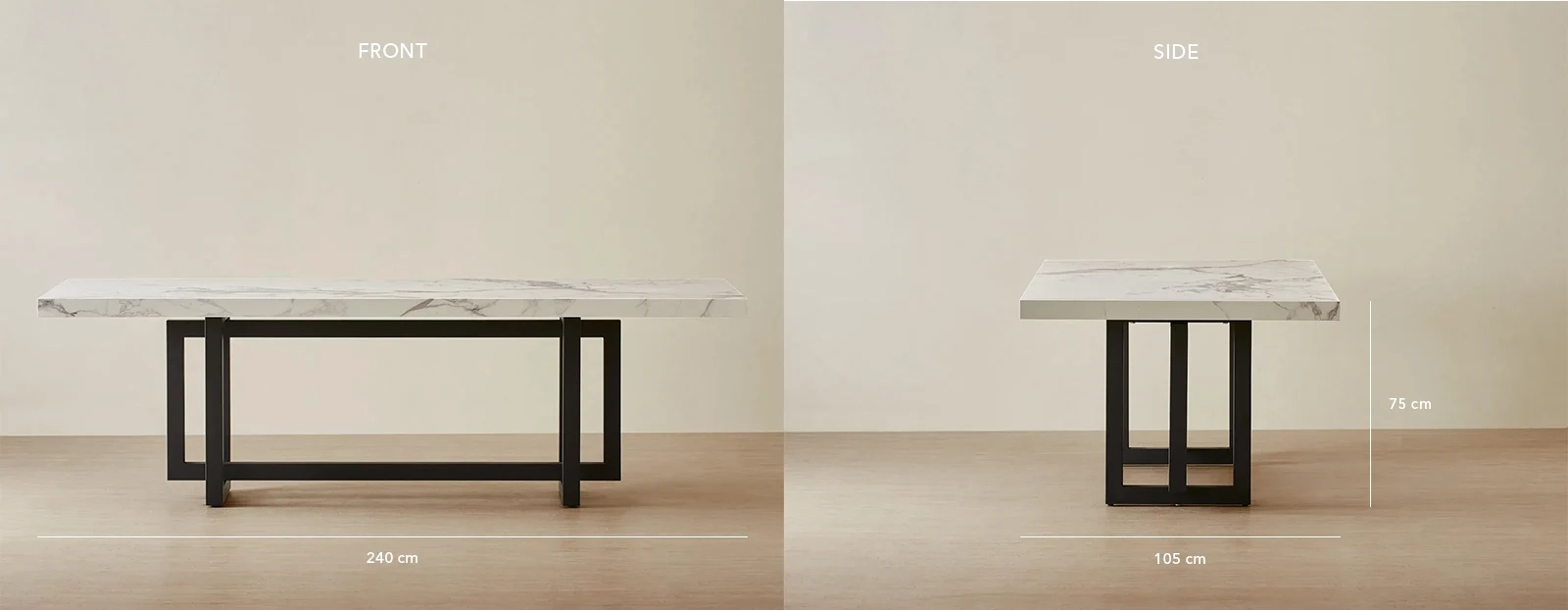The sleek black metal base provides a sturdy foundation, while the minimalist geometric design adds a contemporary edge. Perfect for hosting family gatherings or elegant dinners, the Grayson dining table brings both style and function to your dining space.