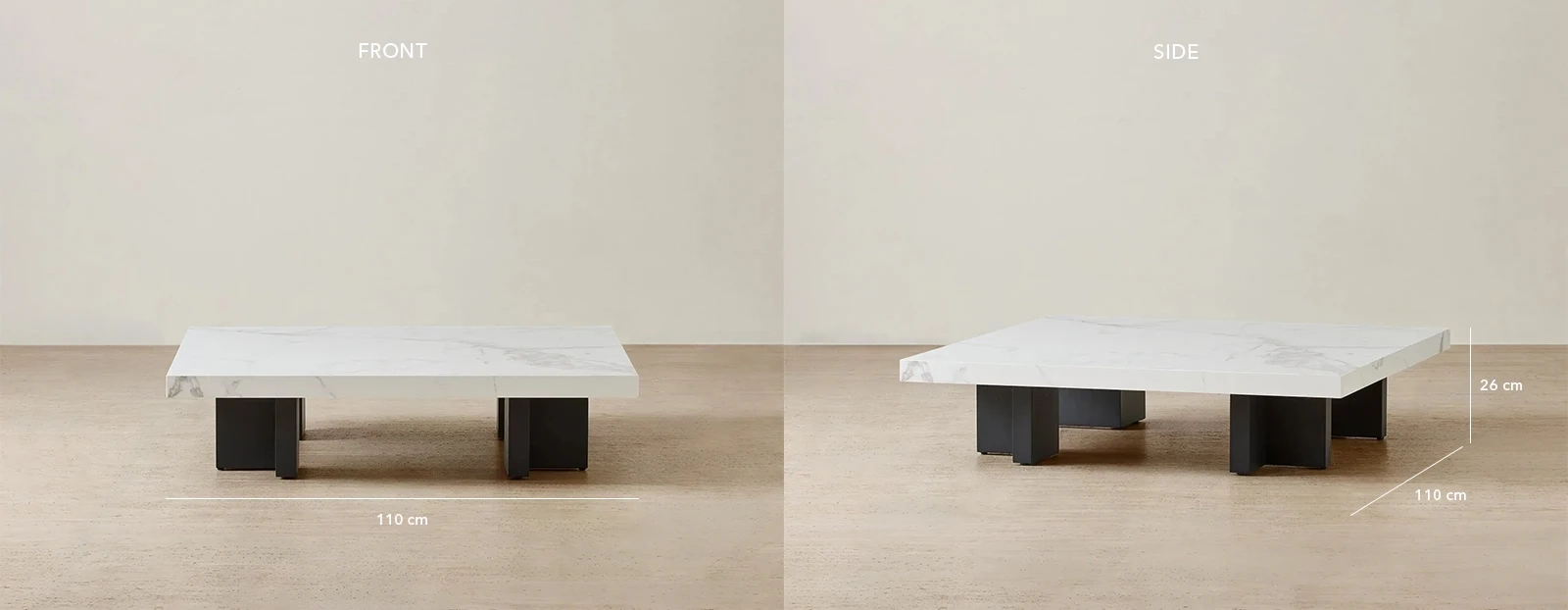 The matte black base, composed of interlocking rectangular legs, forms a sculptural foundation that anchors the design with poise and symmetry. Standing at just 26cm high, the Grayson is perfectly suited for low-profile seating areas.