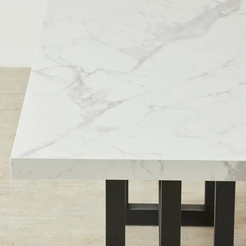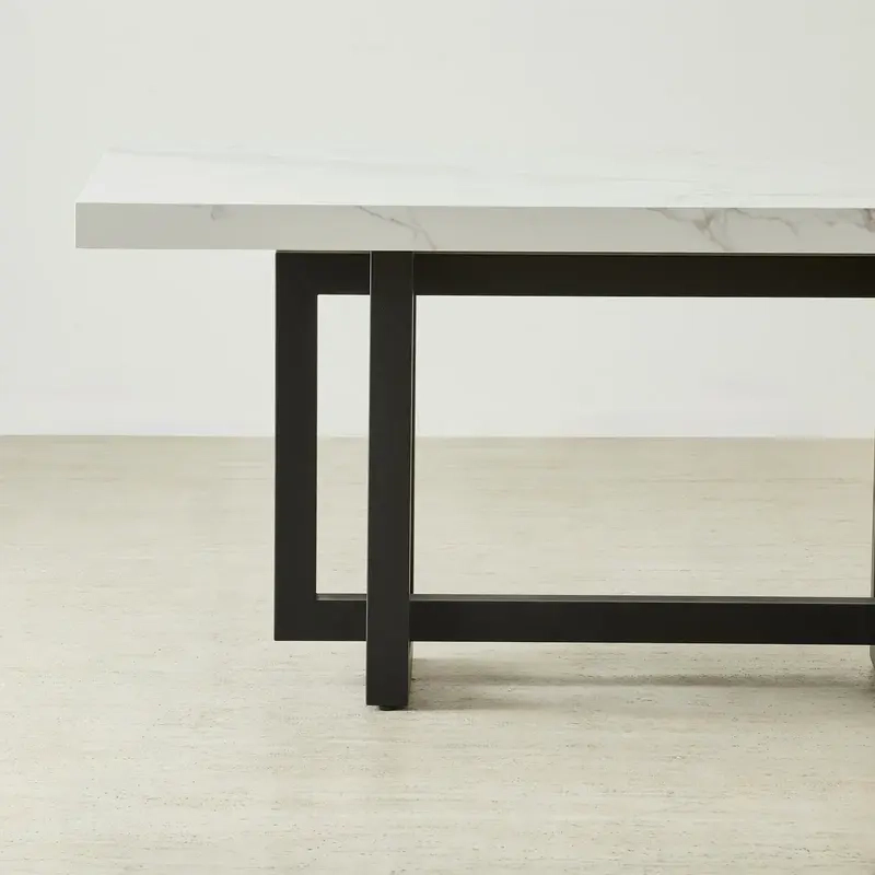 Its clean rectangular form rests on sculptural black legs, providing a bold yet versatile foundation. With its balanced proportions and elegant detailing, this table serves as a striking focal point in any dining space.